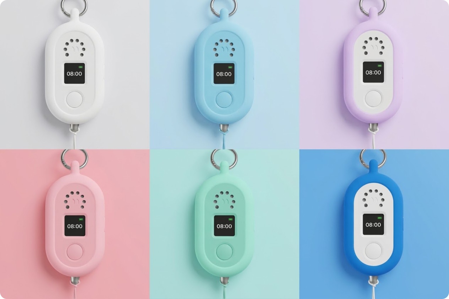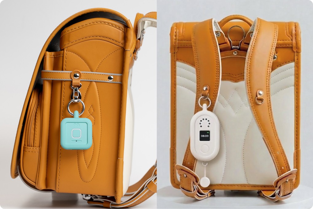 付属のカラビナを使用してランドセルやカバンなどに直接装着することができます。防犯ブザー機能付きの「みてねみまもりGPSトークPlus」では、いざというときにすぐストラップを引っ張って防犯ブザーを鳴らすことができます。