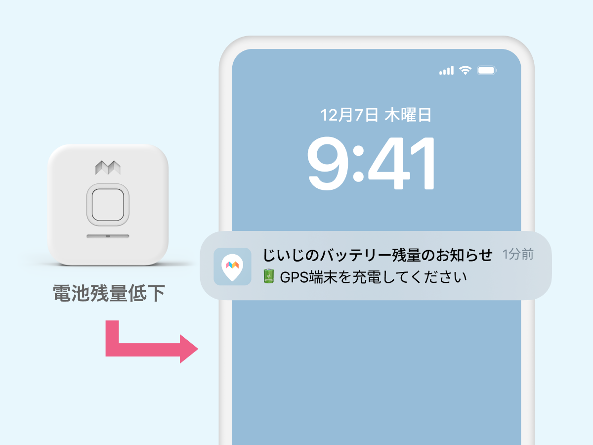 いずれの端末でも、アプリ側でみまもりスポットを設定しておけば、スポットへの出入りを感知して通知を受け取ることが可能です。