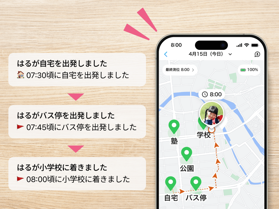 小学校にちゃんと着いたか、帰り道を間違えたり寄り道していないかなど、アプリですぐに確認できるので安心です。