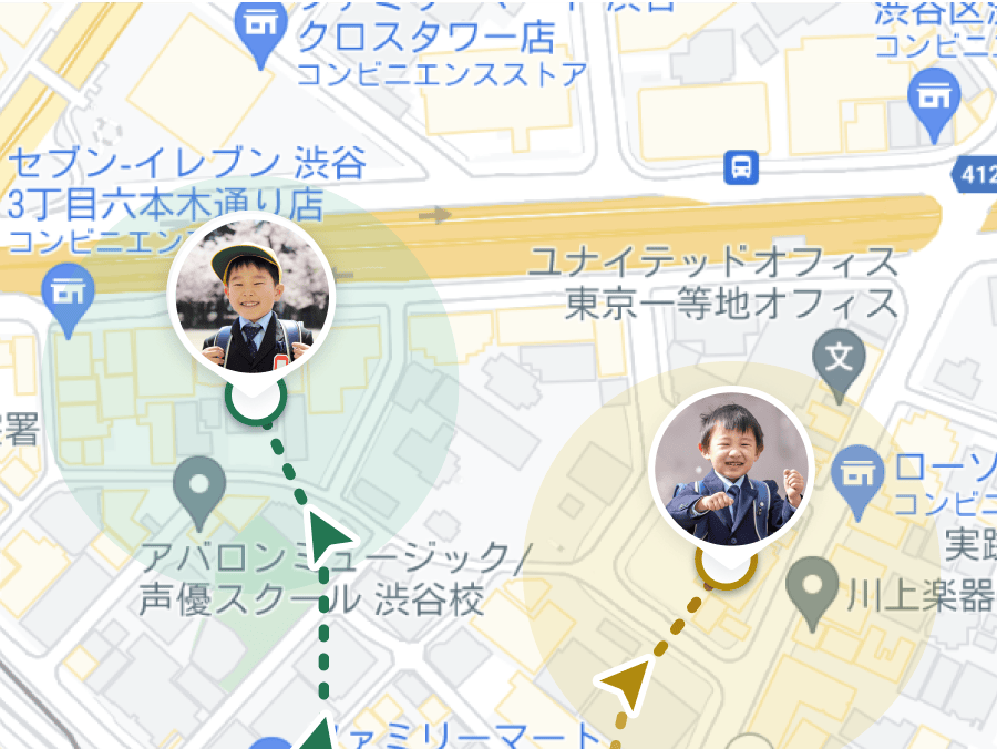 きょうだいの居場所を一目で確認できるので、毎日の見守りがもっと手軽に。2人でも3人でも、端末の数に制限なくご利用いただけます。